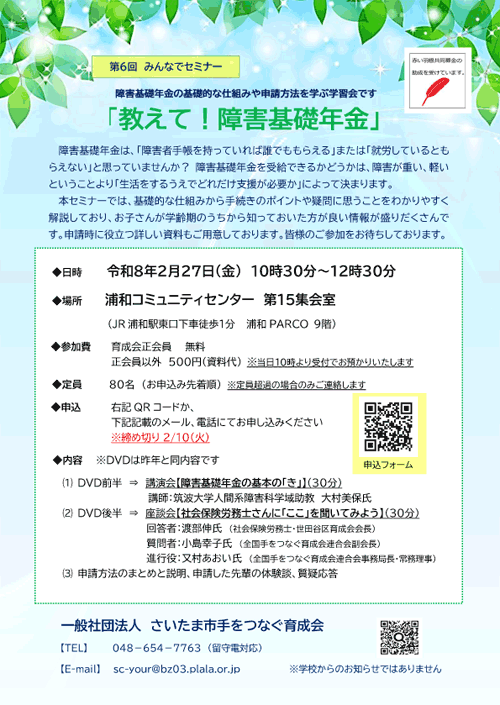 参加費用:育成会正会員 無料 正会員以外 500円(資料代)